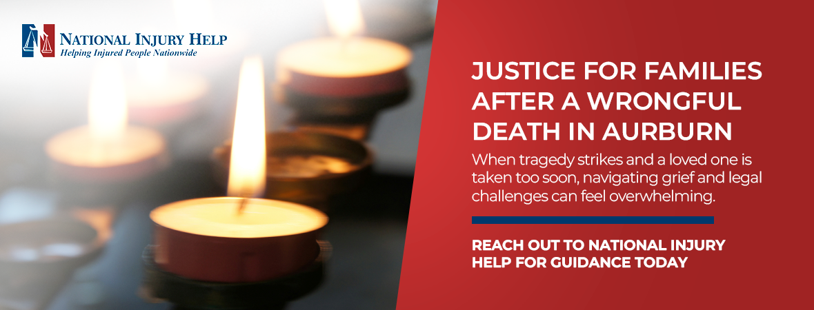 National Injury Help helps families find attorneys who understand both the law and the unique local factors affecting Auburn wrongful death cases. Our attorneys have experience handling claims resulting from traffic collisions, workplace accidents in warehouses and manufacturing facilities, construction site fatalities, unsafe premises, medical malpractice, and defective products. They offer compassionate guidance while aggressively advocating for fair compensation.