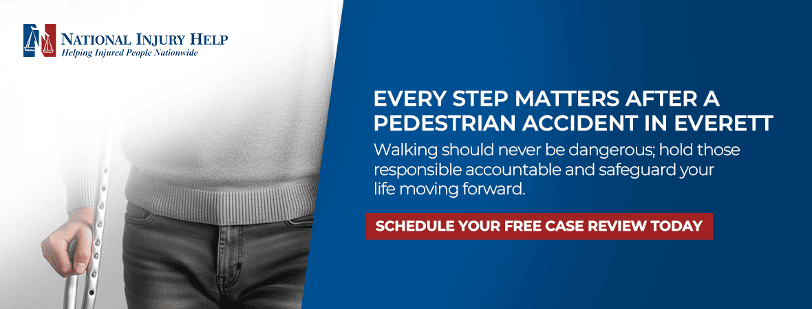 Recovering from a pedestrian crash? Connect with a National Injury Help’s Everett pedestrian accident lawyer and take the first step toward justice.