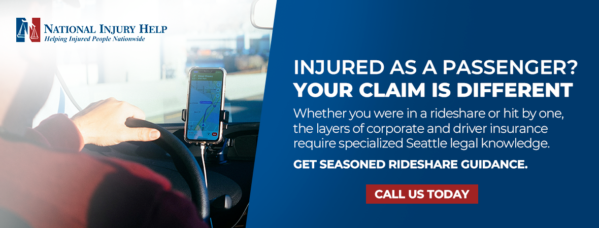 - National Injury Help connects Seattle residents with skilled attorneys who understand both local law and the complexities of rideshare claims.